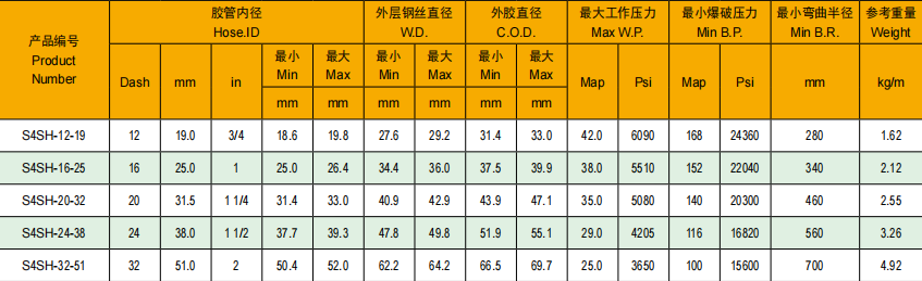 S4SH超高壓四層交互纏繞的高強(qiáng)度鋼絲油管