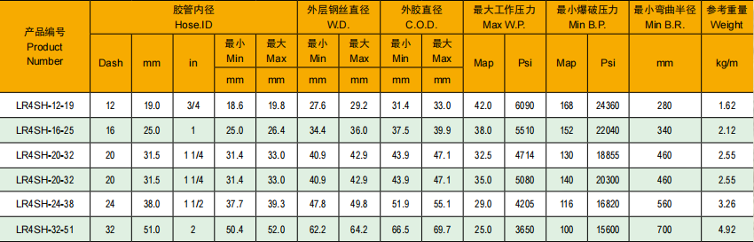應用標準:GB/T 10544 4SH,EN 856 4SH,MT/T98 4SH