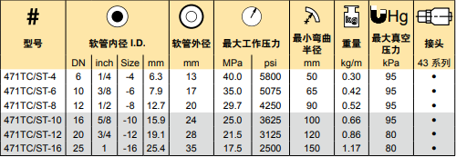 適用介質(zhì):石油基液壓油,水乙二醇,潤滑油,空氣和水。用于1.7MPa以上的空氣時,軟管需針刺。