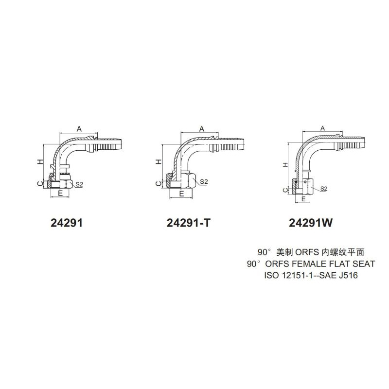 永華標準扣壓式接頭 24291和24291-T以及24291W90美制ORFS 內螺紋平面90ORFS FEMALE FLAT SEATISO 12151-1-