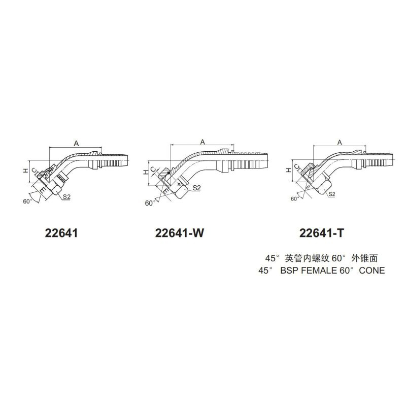 永華標準 扣壓式接頭 22641和22641W以及22641T 45°英管內(nèi)螺紋 60°外錐面 英制管接頭 液壓接頭 BSP螺紋 錐型密封面接頭 總成管接頭