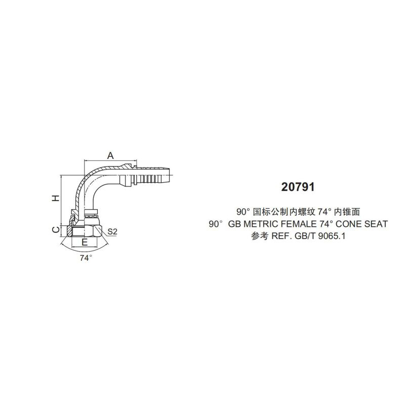 永華標準扣壓式接頭 2079190國際公制內螺紋 74外錐面90 GB METRIC FEMALE 74 CONE SEAT參考標準:REF.GB/T 9065