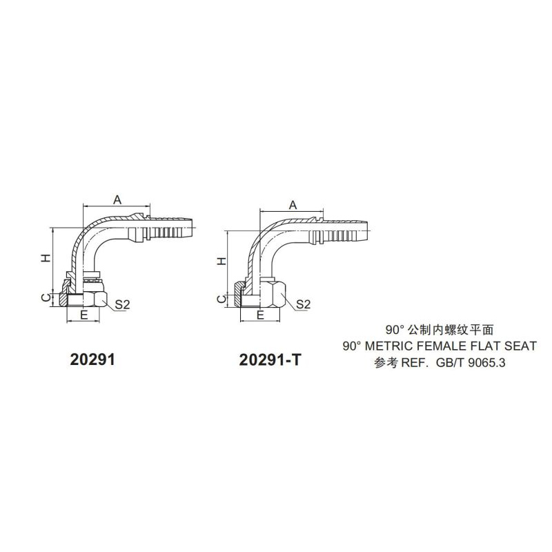 永華標準扣壓式接頭 20291和20291-T 90公制內螺紋 平面90 METRIC FEMALE FLAT SEATREF.GB/T 9065.3永華集團創